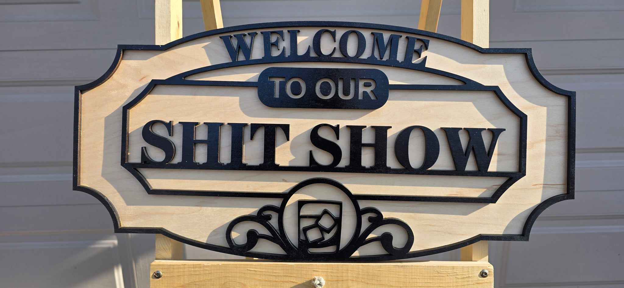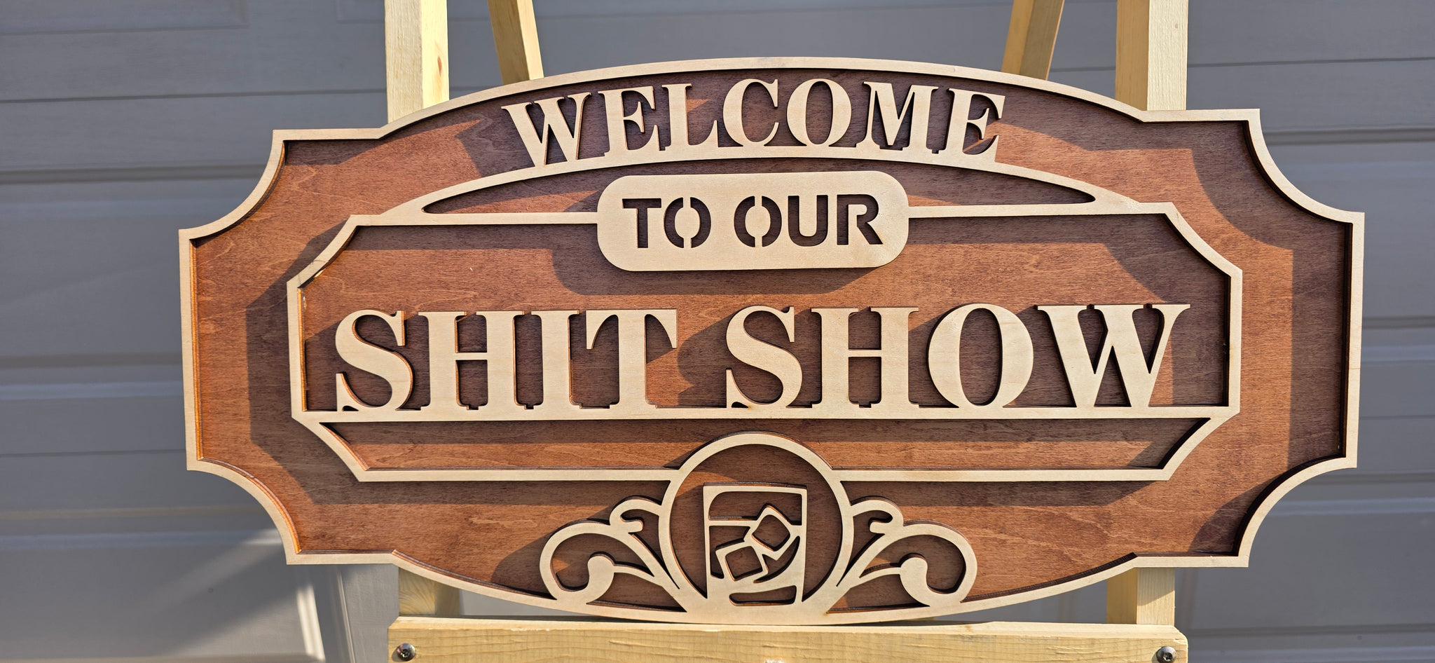 Welcom to Our Shit Show SIgn. 11.5" x 23.5" sign made from 1/4" maple plywood. These signs are made to order, so please allow 7-14 days before product ships.